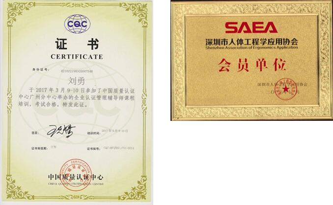 ISO 9001質(zhì)量管理體系、ISO 14001環(huán)境管理體系、OHSAS 18001職業(yè)健康安全管理體系、ISO13485醫(yī)療器械質(zhì)量認證管理體系、TS16949汽車行業(yè)質(zhì)量管理體系認證、QC080000、中國環(huán)境標志認證(十環(huán))、CQC環(huán)保認證、企業(yè)信用評價AAA級信用企業(yè)、RoHS、CE、REACH、FCC等證書、人類工效學認證、家具中有害物質(zhì)限量認證證書、家具定制服務認證、綠居材3G認證、FSC-COC/PEFC森林認證、綠色建材產(chǎn)品證書